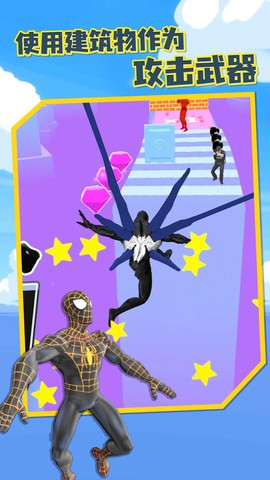 3、整整300个关卡,难度各不相同,结合各种英雄的跑酷动作,收集毒液对付蜘蛛侠,越玩越有意思。