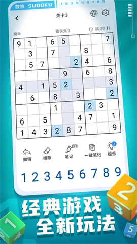 标准九宫格: 经典中的经典!每次填对数字时那种"咔嗒"的音效都让人上瘾。建议开启"错误提示"功能,除非你想体验反复检查二十遍的绝望。