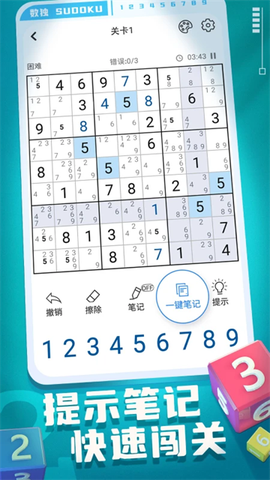 准备好迎接一场颠覆传统的数字狂欢了吗?开心数独绝对能让你欲罢不能!这款游戏把经典数独玩出了新高度,九宫格里的每个数字都像在和你玩捉迷藏。别被它萌萌的卡通界面骗了——当你盯着那些空白格子时,大脑会不自觉地高速运转起来。最妙的是,它根本不需要联网,地铁通勤或睡前十分钟,随时都能来场刺激的脑力体操。