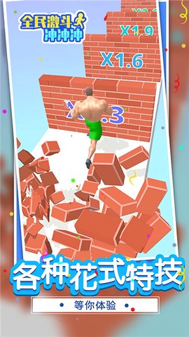 全民激斗冲冲冲是一款以肌肉猛男为主角的3D动作跑酷游戏,玩家通过操控角色在高速移动中突破障碍、收集强化道具,实现角色成长与特技释放的复合型玩法。游戏采用物理碰撞引擎与动态难度调节系统,在保证操作流畅度的同时,为不同水平玩家提供渐进式挑战体验。