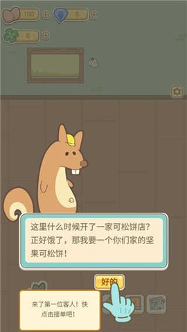 1. 首先下载并安装我们网站上提供的萌鸡烤饼店游戏,打开之后就准备迎接你的第一位顾客吧,点击接单开始你的经营之旅!