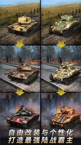 2. 独创的"装甲进化树"系统,允许玩家通过230个技术节点对坦克进行跨代际升级,不同改造路线将解锁截然不同的战术风格。