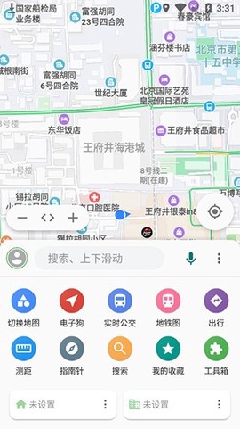 2、你只需要在搜索框里输入目的地,轻松点击搜索,附近的美食、超市、酒店、银行和景点等信息立刻呈现,简直是个出行小助手!