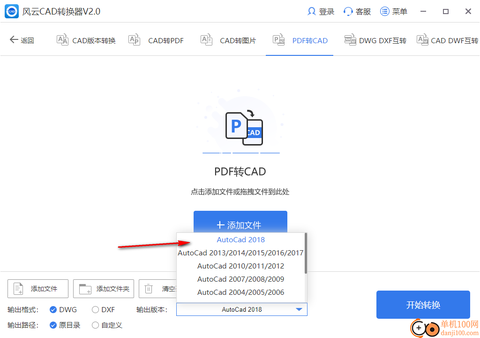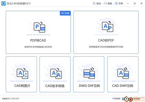 3. 在软件顶部界面可以自由切换转换功能,显得极为人性化,选择CAD版本转换或CAD转换PDF都非常方便。
